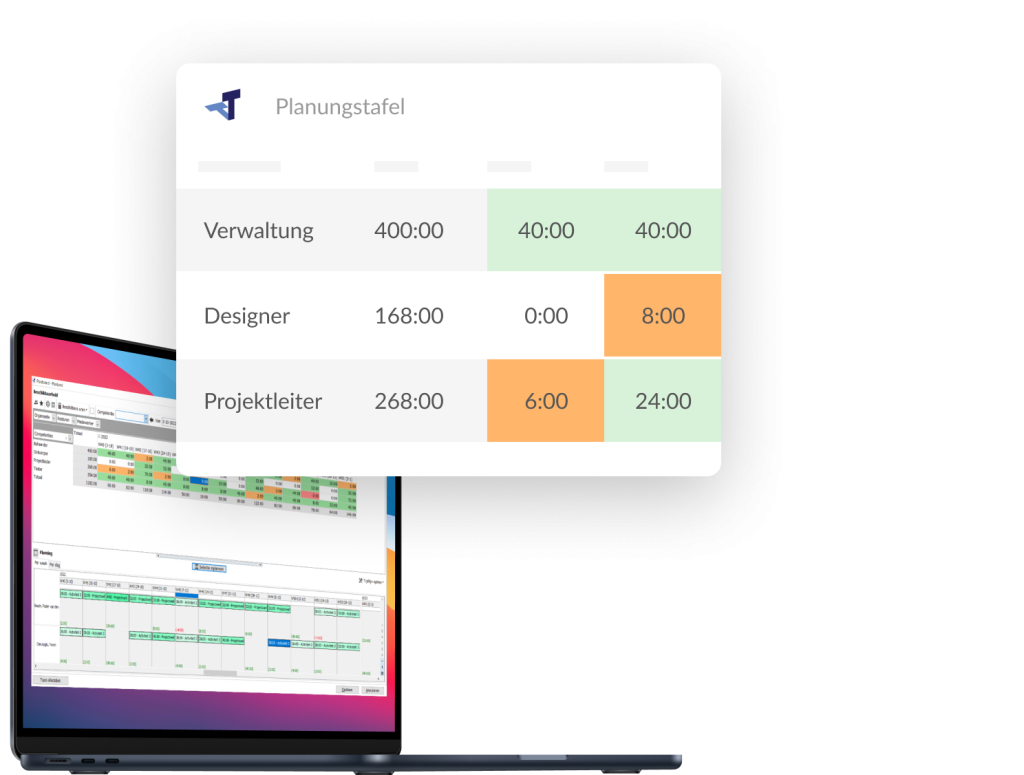 - Bietet über die Planungstafel Einblick in die Kapazitäten der Mitarbeiter